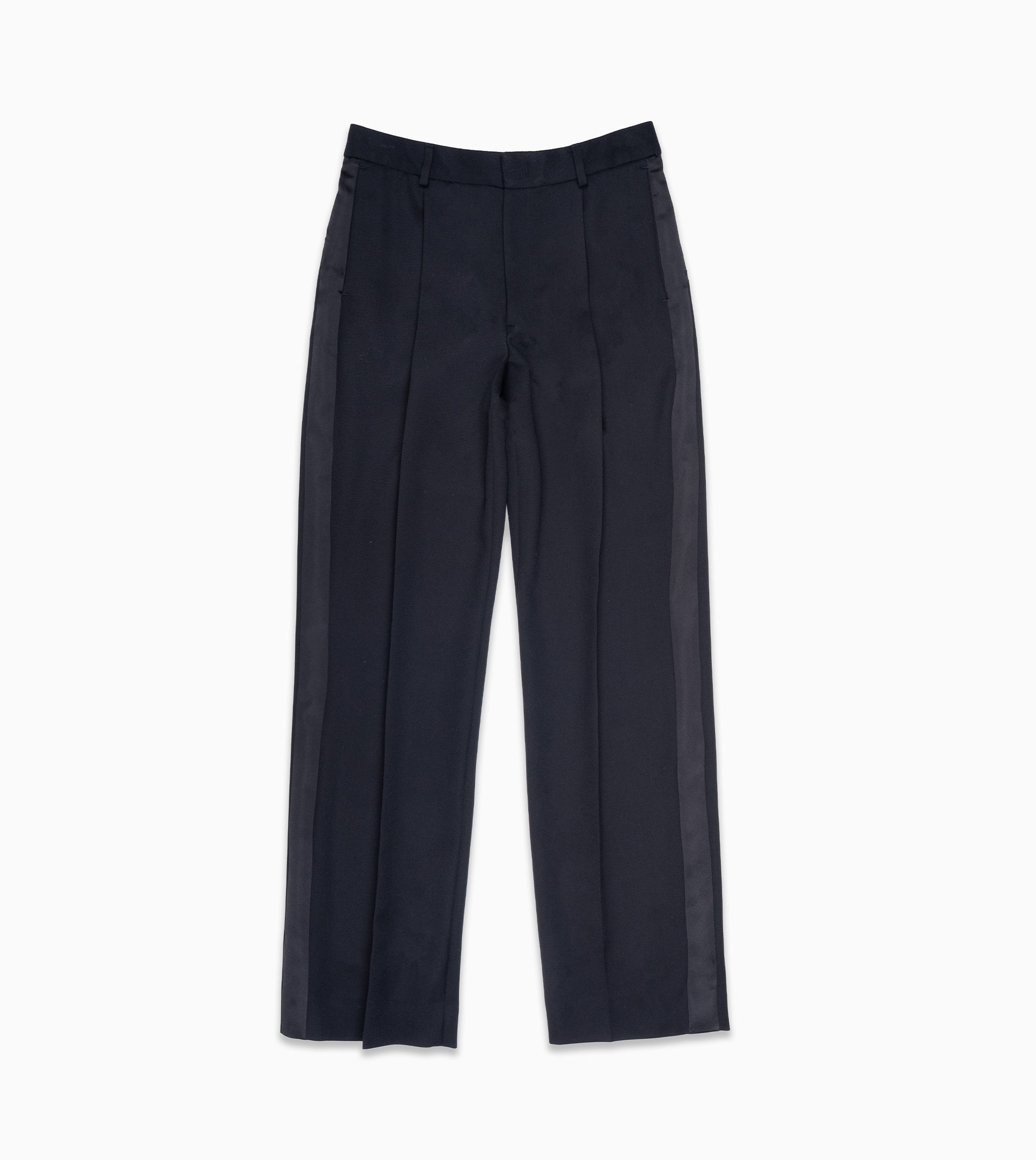 Meticulously tailored from grain de poudre, the Straight Leg Tailored Trouser in classic Black is fully lined and has a mid-rise cut with front leg pleats. Classic suiting design codes such as side pockets, back jet pockets and belt loops complete the look.